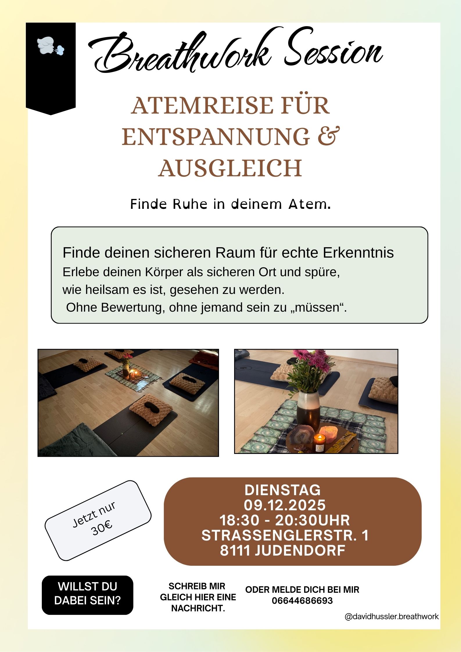 Ich erschaffe einen sicheren Raum, und wir machen einen wunderschöne Atemreise für Entspannung & Ausgleich.
