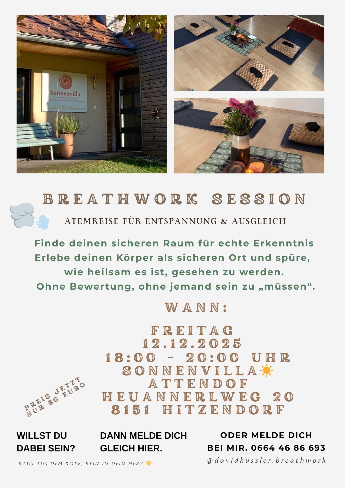 Breatwork Session, Mediation, liebevolle Begleitung und einfache Tools für deinen Alltag.